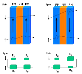يمكن للإلكترونات الانتشار في إحدى الطبقتين المغناطيسيتين بسبب اتجاه عزمها المغزلي المناسب، أن تتشتت في الطبقة الثانية إذا كانت مغناطيسية الطبقة معاكسة. ولكن انتشار الإلكترونات بين الطبقتين يكون في حالة أن تكون مغناطيسية الطبقتين في نفس الاتجاه.