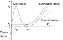 قد تكون المقاومة التفاضلية سالبة الإشارة في حيز معين من درجة الحرارة بحيث ينخفض التيار بارتفاع الجهد أو بالعكس حيث يتزايد التيار بانخفاض الجهد. في الرسم البياني المرافق تحدث تلك الظاهرة في النطاق VP < V < VV.