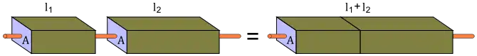 وفي حالة مرور التيار (طوليا) في موصل طوله l ومساحة مقطعه A تنطبق المعادلة :