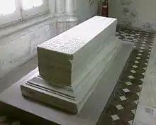 تمت إزالة النصب التذكاري للمقيم عندما أعيد تحويل القبر إلى كنيسة. عندما لم يعد المبنى يستخدم ككنيسة، تم وضع التابوت في موقع المذبح السابق وليس في الموقع الأصلي للمقبرة. [1]