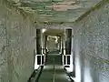 الأشكال مرسومة بخطوط سوداء وحمراء مع نصوص هيروعليفية، وهي مرسومة على خلفية صفراء تميل إلى الاحمرار . هذا الشكل يعطي شكل لفة ورقة بردي هائلة الاتساع. والجزء العلوي من الجدران يزينه إفريز بشكل حزم نبات البوص . أما السقف فهو باللون الأزرق وتملؤه نجوم صفراء متراصة بنظام، تمثل سماء العالم الآخر المفتوحة لتلقي روح فرعون المتوفى. [1][2]