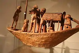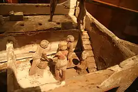 وعثر بجانب التابوت أثات خشبية مختلفة ، من ضمنها نموذج لشونة قمح وتماثيل خشبية للعمال ونموذج مطبخ وطباخين . كذلك عثر على نماذج من الخشب لسفن وعليها بحارتها. كما وجد تمثالين خشبيين لحرش حوتب مزينة ، وتمثال ثالث يمثل أحد الخادمات. وعثر أيضا في المقبرة على صنادل خشبية لحرشف حوتب وكذلك نماذج صنادل ونماذج لآلات اليدوية.