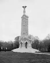 النصب الجديد الذي صممته شركة الهندسة المعمارية المحلية بومان براذرز ، اتبعت إلى حد كبير التصميم الأصلي باستثناء كونه تمثالًا رخاميًا لجندي من الاتحاد ووضع فوق النصب بدلاً من النسر. تم الانتهاء من النصب التذكاري الجديد في 15 أكتوبر 1906.