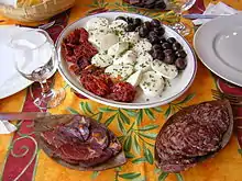 المقبلات [7] هو طبق صغير يقدم قبل الوجبة [8] في المطبخ الأوروبي . يتم تقديم بعض المقبلات باردة والبعض الآخر ساخن. كما يمكن تقديمه على مائدة العشاء كجزء من الوجبة ، أو قد يتم تقديمها قبل الجلوس ، مثل حفل استقبال أو حفل كوكتيل . في السابق ، كان يتم تقديم المقبلات أيضًا بين الدورات. [9]