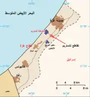مفترق نتساريم، هو تقاطع الزاوية اليمنى من الطريقين المعروفين محليًا بمفرق الشهداء، وذلك نخليدًا للفلسطينيين الذين لقوا حتفهم هناك في اشتباكات مع جنود إسرائيليين، وتقع على بعد بضعة كيلومترات جنوب مدينة غزة( في 31.465129° شمالًاو34.426689° شرقًا).[25] حيث كانت القاعدة العسكرية الإسرائيلية، ماجن- 3،[26] هنا لحراسة مدخل مستوطنة نتساريم القريبة حتى انسحاب إسرائيل في 2005. وعاشت فيها ستون عائلات إسرائيلية في المستوطنة فقط مع قافلة عسكرية. وتتفرق قوات ماجن-3 في الجانب اليمنى السفلى/الربع الشمالي الغربي جنبا إلى جنب مع مستودع مهجور ومبنيين مكونين من ستة طوابق ومعروفين باسم "توينز"[27] وفي يوم حادث رأس السنة اليهودية، كان يحرس المنطقة 18 جنديًا إسرائيليًا من فصيل لواء هندسة جعفاتي، ومن كتيبة هيرف.[28]