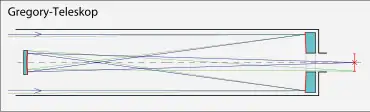 مخطط يوضح مسار الضوء في المقراب الغريغوري.