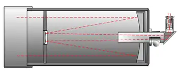 كما هو الحال بالنسبة لمقراب نيوتن ومقراب غريغوري تعكس المرآة الرئيسة الاشعة المجمعة عن طريق مرآة مساعدة جانبا (مقراب نيوتن) أو إلى فتحة في المرآة الرئيسة إلى مستقبل الصورة.