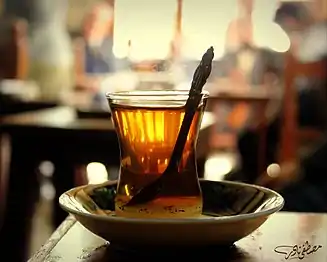 صورة لكوب الشاي الذي يُقدمه المَقهى من داخل المَقهى.