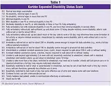 - Kurtzke JF (1983). "Rating neurologic impairment in multiple sclerosis: an expanded disability status scale (EDSS)". Neurology. 33 (11): 1444–52. doi:10.1212/WNL.33.11.1444. PMID 6685237. الوسيط