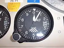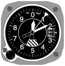 يسمى أحيانا بارومتر الارتفاع هو مقياس تقليدي للارتفاع وموجود بمعظم الطائرات. وهو بارومتر معدني يقيس ضغط الجو من انبوب ثابت خارج جسم الطائرة ويسمى انبوب استاتيكي static port ويقل ضغط الهواء كلما ارتفعنا للأعلى بمعدل واحد ملي بار(0.03 انش من الزئبق) لكل 27قدم(8.23متر) من سطح البحر.
