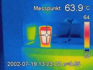 توجد طريقة جديدة لقياس درجة حرارة الاجسام تعتمد على تأثر بعض المواد الكيميائية بالحرارة وتغير لونها. وقد طبقت تلك الظاهرة في الكاميرات الحرارية التي تلتقط صورا تشبه الصور الفوتغرافية مع الفارق فبدلا من أن تري اختلافات الضوء والظل فهذه الكاميرات تري الأشياء طبقا لدرجة حرارتها وتعطي صورة ملونة لها بحيث يعطينا كل لون درجة حرارة معينة. وتستخدم آلات التصوير هذه مثلا لمعرفة أماكن تسرب الحرارة من المباني. ففي البلاد الباردة تعتمد درجة حرارة في البيوت على التدفئة، إما التدفئة المركزية أو بتسخين الدفايات. وتستهلك هذه الكثير من الوقود كلما كان تسرب الحرارة إلى الخارج كبيرا. ولمعرفة الحوائط والجدران التي تتسرب منها الحرارة، تلتقط آلات التصوير الحرارية الصور الملونة طبقا لدرجات الحرارة، وعن طريقها يمكن وضع خطة لعزل تلك الحوائط المسربة للحرارة، وذلك بتغطيتها بطبقة عازلة من الخارج.