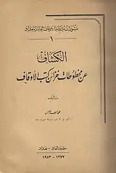 الكشّاف عن مخطوطات خزائن كتب الأوقاف من تأليف محمد أسعد طلس الذي نشر عام 1953