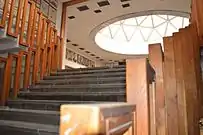 يتم استخدام ردهة المكتبة لاستضافة مُختلف المناسبات الثقافية. أرضية القاعة عبارة عن عمل فريد من الحجر الرخامي والفسيفساء المتنوعة.[7]