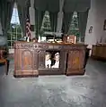 تمت إزالة المكتب من البيت الأبيض مرة واحدة فقط، بعد اغتيال الرئيس جون كينيدي عام 1963، عندما سمح الرئيس ليندون جونسون بالذهاب في معرض متنقل لدى مكتبة كينيدي الرئاسية. بعد ذلك تم عرضه في مؤسسة سميثسونيان.