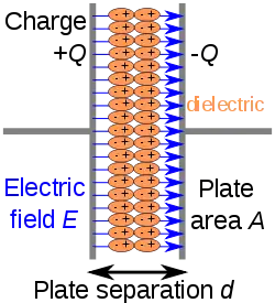 وثابت العزل ε في المعادلة يساوي حاصل ضرب ثابت العزل للهواءεo مضروب في ثابت العزل النسبي للمواد العازلة، بالتالي تكون