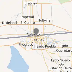 تقع مكسيكالي عبر الحدود مباشرة من كاليكسيكو في كاليفورنيا بالولايات المتحدة الأمريكية.واسم المدينتين مزيج من كلمتي المكسيك وكاليفورنيا.