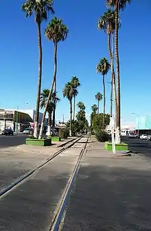 Rail tracks on Avenida Lopez Mateos leading north to the border crossing.