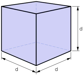 طول القطر الثنائي الأبعاد للمكعب الذي أبعاده تساوي d هوː , وطول القطر الثلاثي الأبعاد هو ː[1]