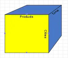 تقطيع هو مصطلح للبعد الذي يبقى ثابتاً لجميع الخلايا بحيث يمكن أن تظهر المعلومات متعددة الأبعاد في الفضاء المادي الأبعاد من جدول أو جدول محوري. كل خلية من المكعب يحمل الرقم الذي يمثل بعض قياسات للعمل، مثل المبيعات والأرباح والنفقات والميزانية والتوقعات. عادة يتم تخزين البيانات OLAP في مخطط نجمي أو مخطط ندفة الثلج في العلائقية مستودع البيانات أو في نظام إدارة البيانات لأغراض خاصة. المقاييس عادة مشتقة من سجلات جدول الحقيقة، والأبعاد عادة مشتقة من جدول الأبعاد.