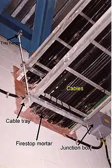 علبة كابلات تخترق حاجز اختبار المضاد للحرائق .