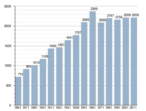 في سنة 1861 بلغ عدد السكان 715 نسمة، وتطور العدد ليصل في سنة 2011 لـ 2٬209 نسمة.