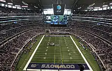 ملعب الكاوبويز: هو أكبر ملعب مقبب في العالم، وأكبر ملعب بدون أعمدة داخلية، وتعتبر الشاشة الداخلية أكبر شاشة في ملعب رياضي في العالم.[1][2][3] يقـع ملعـب الكـاوبيوز في مدينـة أرلينغتون بولاية تكساس الأمريكية ، وهـو ملعب نادي كرة القدم الأمريكية دالاس كاوبويز، وذلك بـدلاً من الملعـب القـديم للفريق الذي تم افتتاحه في السبعيـات. لا يقتصـر استعمال الملعـب على رياضة واحـدة كمـا هـي ملاعـب امريكيـا، فيمـارس عـدة العـاب وأحـداث مختلفة في الملعـب من كرة القدم الأمريكية، كرة القدم، كرة السلة، والأحـداث الدينيـة والترفيهية وغيـرها.