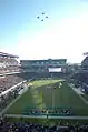 طائرات تطير فوق الملعب تزامناً مع غناء النشيد الوطني الأمريكي إحتفالاً بالمباراة السنوية بين فريق البحرية الأمريكية و فريق الجيش الأمريكي.