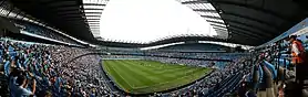 الوسيط|CitationClass=تم تجاهله (مساعدة) - Etihad Stadium Manchester City, virtual stadium tour & video | Barclays Premier League [وصلة مكسورة] نسخة محفوظة 8 يونيو 2016 على موقع واي باك مشين.