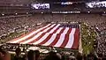 العلم الأمريكي خلال عزف النشيد الوطني الأمريكي قبل المباراة
