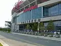 صورة للملعب من الجهة الشمالية و يظهر في خلفية الصورة مركز مدينة ناشفيل.