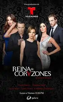 |CitationClass=تم تجاهله (مساعدة) - "Esta noche es el Gran Estreno de Reina de Corazones por Telemundo (VIDEO)". telemundo.com (باللغة الإسبانية). مؤرشف من الأصل في 10 يناير 2018. اطلع عليه بتاريخ 30 سبتمبر 2015. الوسيط