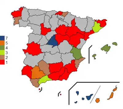| عدد مرات الفوز في ظل منظمة ملكة جمال اسبانيا (ملكة جمال الكون أسبانيا وملكة جمال العالم أسبانيا) | ||