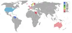 البلدان والأقاليم التي أرسلت المندوبين والنتائج لملكة جمال العالم 1955