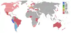 | إنقطاع عن | أروبا, باهاماس, الهند, الأردن, ماليزيا, سورينام, سوريا, ترينيداد وتوباغو |