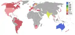 | إنقطاع عن | سريلانكا, كولومبيا, قبرص, غيانا, كوريا, لوكسمبورغ, نيكاراغوا, بنما, ترينيداد وتوباغو, تونس |