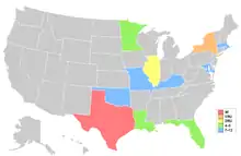 ![]() تشيلسي سميث ، حاملة لقب مسابقة ملكة جمال الولايات المتحدة الأمريكية 1995 والوصيفة الأولى شانا موكلر المتوجة باللقب بعد تتويج تشيلسي بمسابقة ملكة جمال الكون 1995 | |