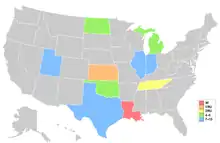 ![]() آلي لاندري ، حاملة لقب مسابقة ملكة جمال الولايات المتحدة الأمريكية 1996 آلي لاندري ، حاملة لقب مسابقة ملكة جمال الولايات المتحدة الأمريكية 1996 | |
