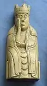 تشبه قطعة الملكة في قطع لويس الشطرنجية قطعة الملكة الجالسة على العرش وعليها تاج لكن مع يد واحدة في حضنها والأخرى على خدها وترتسم على وجهها نظرة الحائر المشغول البال، وتشير التصاميم الزخرفية على العرش أنها من أصل اسكندنافي، [1] وتفوق القطع الأثرية المستخرجة من الحفريات في السويد والدنمارك والنرويج مثيلاتها في باقي دول أروبا.[12]