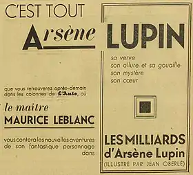مليارات أرسين لوبين، بالفرنسية Les Milliards d'Arsène Lupin، رواية بوليسية من تأليف موريس لوبلان ظهرت فيها شخصية أرسين لوبين، نشرت لأول مرة مجزأة على 29 جزءا بين 10 يناير/كانون الثاني و11 فبراير/شباط 1939 في جريدة L'Auto.[1] أعيد نشر الرواية مجمعة في كتاب واحد مباشرة بعد وفاة لوبلان في نوفمبر/تشرين الثاني 1941 من قبل دار النشر آشت مرفقة برسومات من إنجاز الرسام الفرنسي أندري بيكو، لكن هذه النسخة لم تشمل الجزء 23 الذي نشر بتاريخ 3 فبراير/شباط 1939 في جريدة L'Auto، وتم تدارك هذا الخطأ في النسخة الثانية من قبل دار النشر روبرت لافونت سنة 1987.