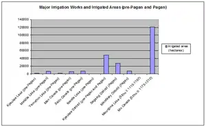 كانت الزراعة المحرك الأساسي للمملكة منذ بدايتها في القرن التاسع. ويُعتقد أن المهاجرين البورميين أدخلوا تقنيات جديدة للتحكم في المياه أو أنهم حسنوا إلى حد كبير نظام السدود، والقناطر، والأحواض، والتحويلات المائية في بيو.[69] وعلى أية حال، مكن التطوير الزراعي لحوض كياوكسي في القرن العاشر والحادى عشر مملكة باغان من التوسع خارج المنطقة الجافة ببورما العليا، ومن الهيمنة على مناطقها الحدودية، بما في ذلك الملاحة في بورما السفلى (Lower Burma)[70]