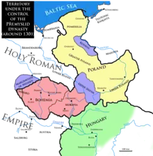 - دوقية النمسا في عام 1251 ودوقية ستيريا في عام 1261 وإيجرلاند في عام 1266 ودوقية كارينثيا إلى جانب مرغريفية كارنيولا ومرغريفية فيندك في عام 1269 ومرغريفية فريولي في عام 1272 على يد الملك أوتوكار الثاني ومن ثم أضاعها لصالح رودولف الأول ملك ألمانيا في عام 1278 في معركة مارتشفيلد؛
