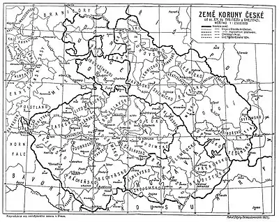 لقد كانت بوهيميا واسمها (Čechy) إلى جانب مقاطعة كوادسكوم (Hrabství kladské) المنطقة الأهم والرئيسية لمملكة بوهيميا، ومنذ عام 1348 قام كارل الرابع بإنشاء أراضي مملكة بوهيميا (Země Koruny české)، إلى جانب المقاطعات المتحدة الموجودة بالفعل: