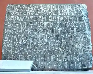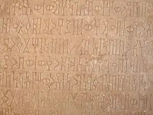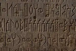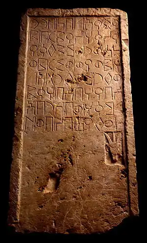 | هذا ما أمر بتسطيره كربئيل وتر بن ذمار علي مكرب سبأ عندما صار ملكا. وذلك لإلهه إل مقه ولشعبه، شعب سبأ |