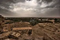 إحدى معالم دومة الجندل. - يُشار إلى دومة عاصمة مملكة قيدار باسم أدوماتو في النقوش الآشورية، وتوصف المدينة من قبلهم كمقر لإتحاد قيدار ومقرًا لعبادتهم.[24] كما تُشير التصريحات حول القيداريين في سجلات الملوك الآشوريين آشوربانيبال وابنه إسرحدون في مكتبة آشوربانيبال إلى أن مصطلح (كيدار/قيدار/أريبي:عربية) كان مرادفا تقريبًا للجزيرة العربية.