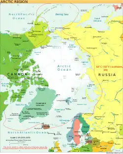 تتضمن هذه المقالة مواد في الملكية العامة خاصة في CIA World Factbook موقع https://web.archive.org/web/20070613024704/https://www.cia.gov/library/publications/the-world-factbook/reference_maps/pdf/arctic.pdf. - Gavin Hudson (2008-12-14). "The Coldest Inhabited Places on Earth". Eco Worldly. مؤرشف من الأصل في 18 ديسمبر 2008. اطلع عليه بتاريخ 08 فبراير 2009. الوسيط
