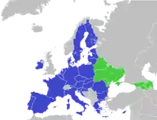 - الدول التي هي جزء من الكتلة السياسية والاقتصادية (27 عضوًا اعتبارًا من 2020):