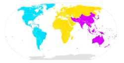 - منطقة 3: وتشمل على معظم مناطق اسيا التي كانت تقع خارج الاتحاد السوفيتي السابق ابتداءاً من إيران ومعظم أوقيانوسيا.