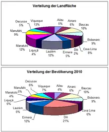 تنقسم تيمور الشرقية ( تيمور لستى ) إلى 13 منطقة ادارية . وتنقسم بدورها هذه المناطق إلى مناطق فرعية . وتنقسم هذه المناطق الفرعية إلى ( سكوس ) ما يمثل قرى ومجتمعات سكنية .