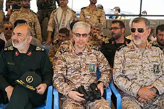 اللواء محمد باقري والعميد حسين سلامي والعميد محمد باكبور في اليوم الأول من المناورات.
