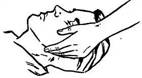 يتم تطبيق إجراء مناورة الفك على المريض بوضعية الاستلقاء. تنفيذه عن طريق وضع السبابة والأصابع الوسطى لدفع الجوانب الخلفية في الفك السفلي إلى أعلى بينما يدفع ابهامهم لأسفل على الذقن لفتح الفم. عندما يتم إزاحة الفك السفلي إلى الامام، فأنه يسحب اللسان إلى الأمام ويمنعه من عرقلة مدخل القصبة الهوائية..[2]
